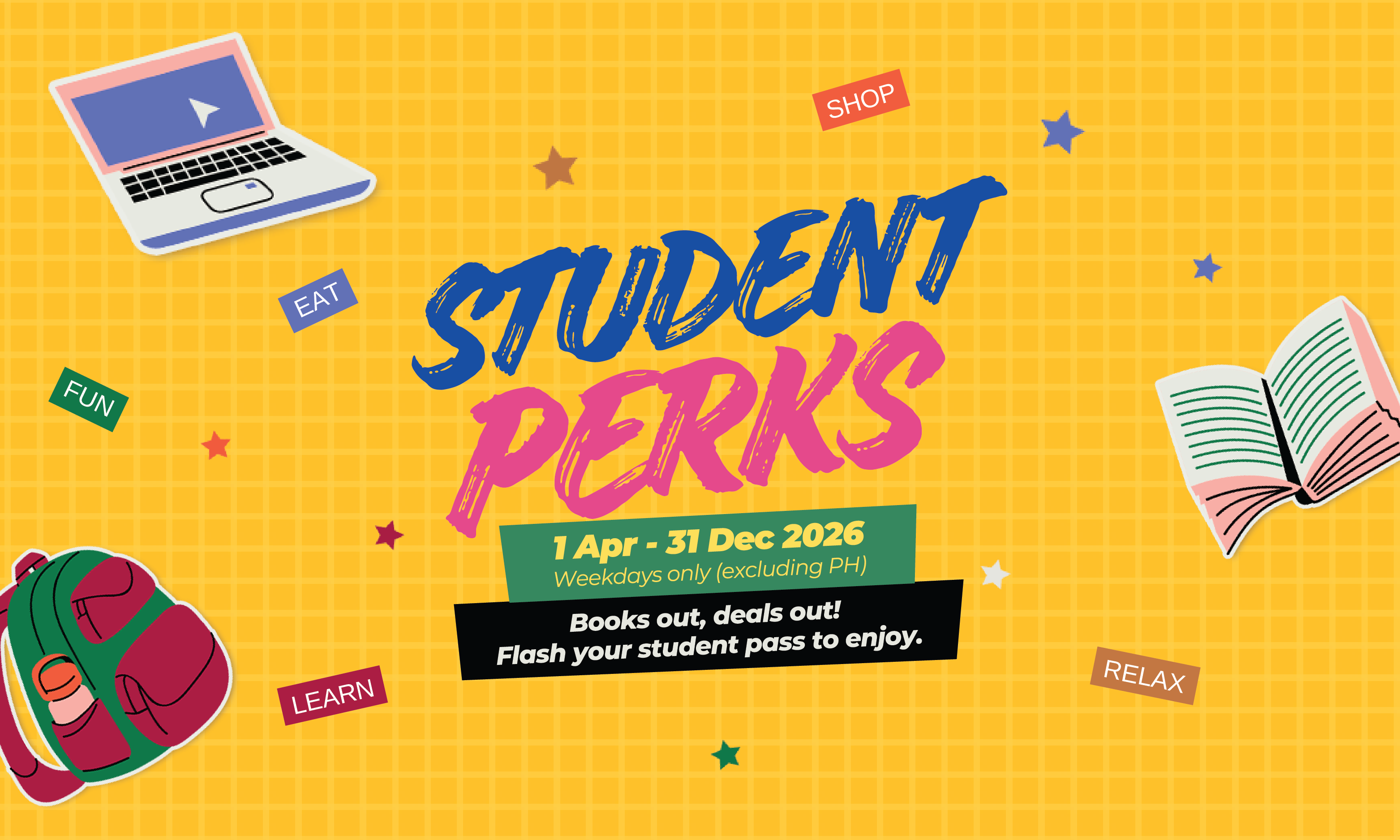 Flash your student pass to enjoy.