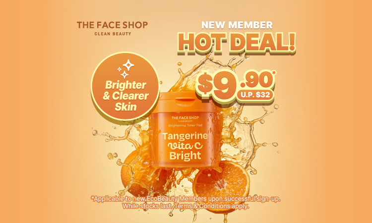 New Member Exclusive! Sign up as an EcoBeauty Member and get the Tangerine Vita C Bright Brightening Toner Pad 180ml for just $9.90* (U.P. $32).