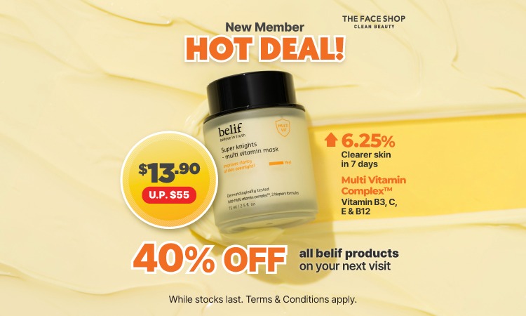 New Member Exclusive! Sign up as an EcoBeauty Member and get the belif Super Knights - Multi Vitamin Mask 75ml for just $13.90* (U.P. $55).